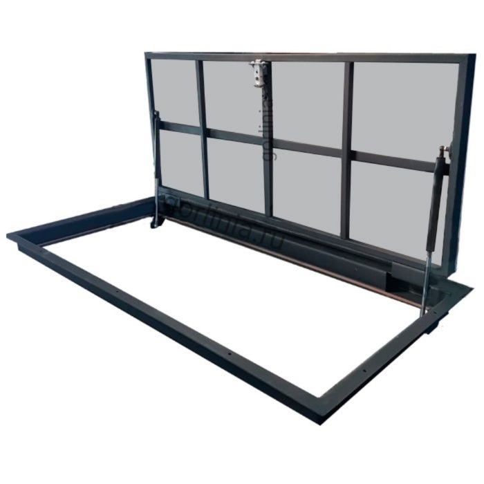 Облегченная рама из листового проката 3 мм с наличником, монтажная глубина 60, в зоне механизма 107 мм. Каркас полотна с обвязкой сварен из трубы 30х20, заполнен ГВЛ под чистовую отделку.