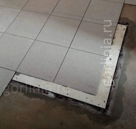 Облегченная модель в угол комнаты или под лестницу без щелей в полу со смещенными за ось открывания петлями через вырезанные в раме ниши. Легкая ходовая часть на амортизаторах и удобный монтаж с облицовкой крышки керамическим или ламинированным покрытием.