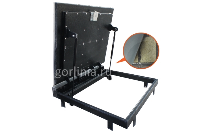 Рама без наличников выставляется в существующем отверстии 97*90 см с допусками, крепится в перекрытии через вертикальные пластины даже когда Ваш ремонт закончен и пол выложен керамогранитом или настелена ламинированная доска.