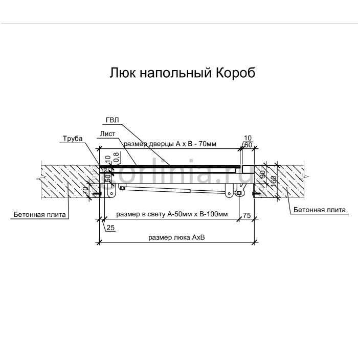 Рама без наличников выставляется в существующем отверстии 60*70 см с допусками, крепится в перекрытии через вертикальные пластины даже когда Ваш ремонт закончен и пол выложен керамогранитом или настелена ламинированная доска.