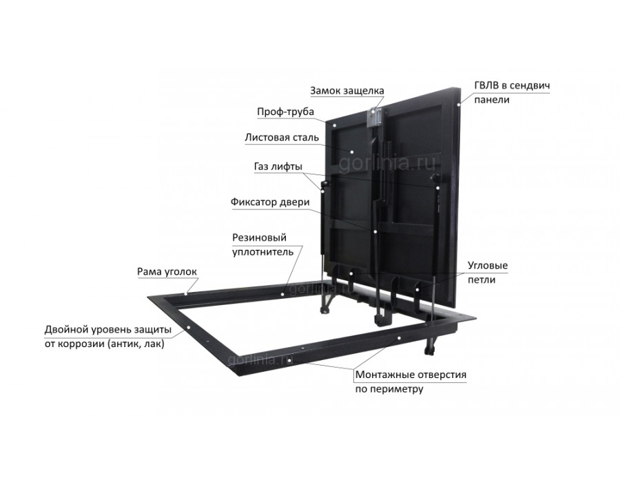 - с наружной стороны отсутствуют внешние элементы, в процессе открывания используется скрытая ручка для люка погреба;