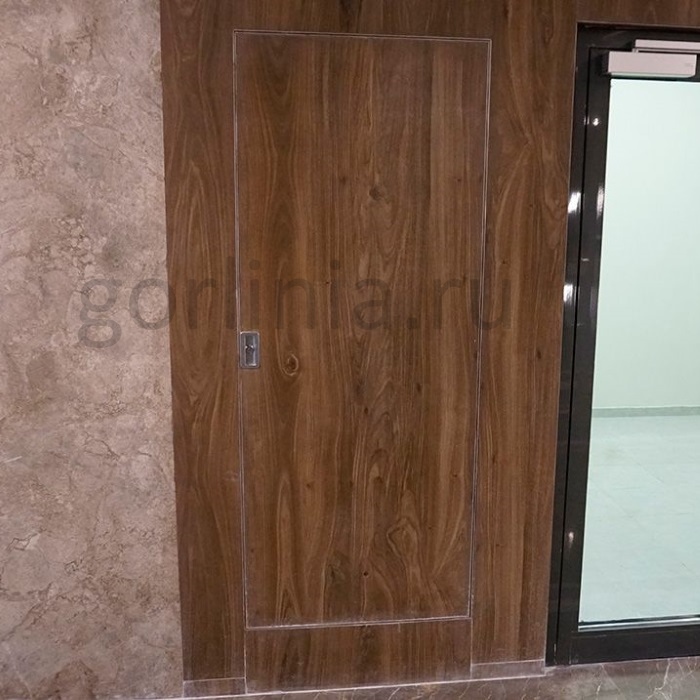 Декоративная отделка с внешней стороны. Нагрузка на коробчатый профиль и шарниры ограничена значением 60 кг на 1 м² площади дверцы. Люк технический для закрытия ревизионных ниш и шахт в стенах на пути эвакуации людей.